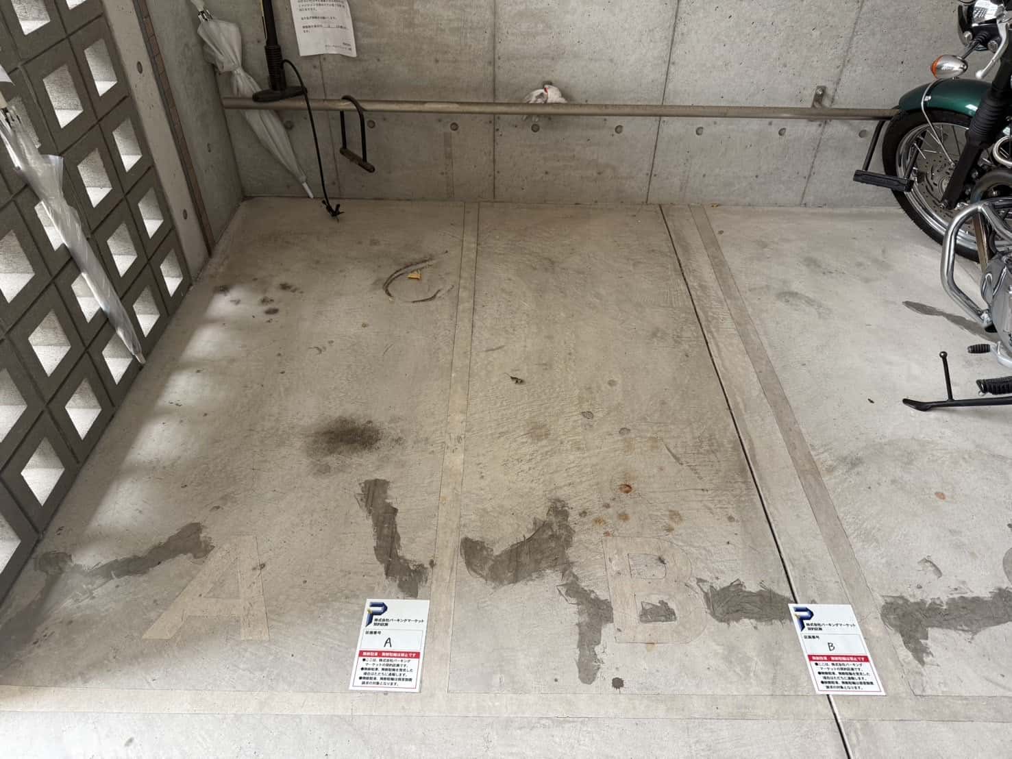 屋内で雨に濡れにくく、アンカー付きでセキュリティ面も安心です。お早めにどうぞ!!