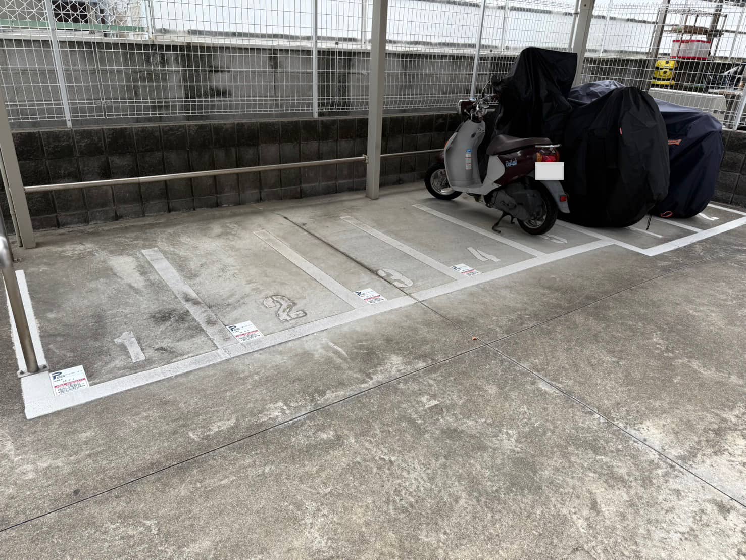 周辺バイク置場がすくないので、早いもの勝ちになります!屋根有アンカー有でおすすめです!